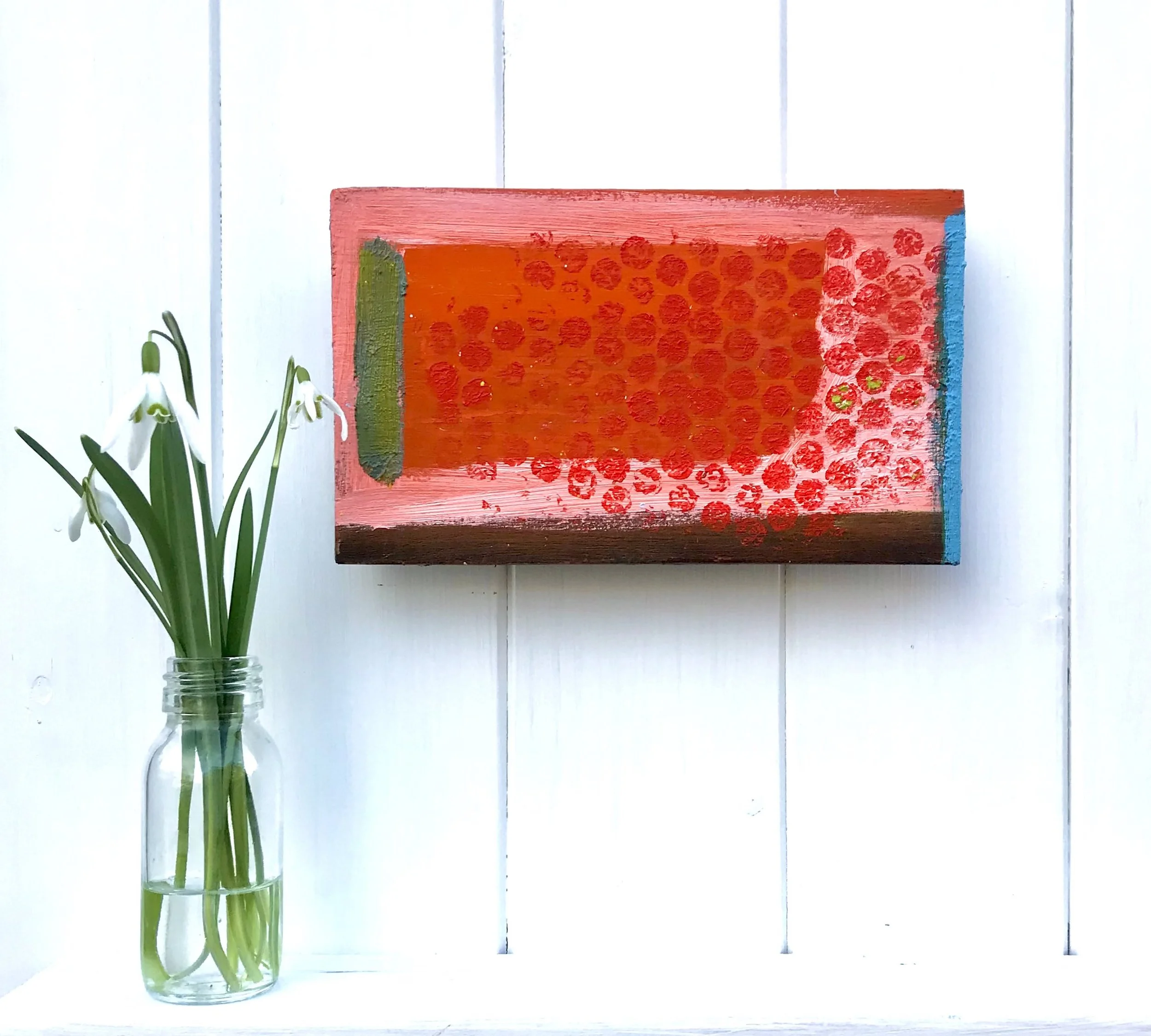 These small playful oil sketches on antique hardwood form part of the series ‘Greetings from far-flung places’. They are a nod to the old art of postcard writing as a very personal, slow, yet lasting way to stay in touch with friends, family and loved ones. The initial boards of this series originate from a Victorian writing desk. Since then I have added ash boards from repurposed antique furniture. The oil panels can be displayed individually or as part of an ensemble.